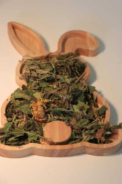 Een zeer diverse samenstelling van wilde plantenbladeren en smakelijke bloemen vormt een optimale aanvulling op de weidevoeding voor gevoelige konijnen en konijnen met gebitsproblemen